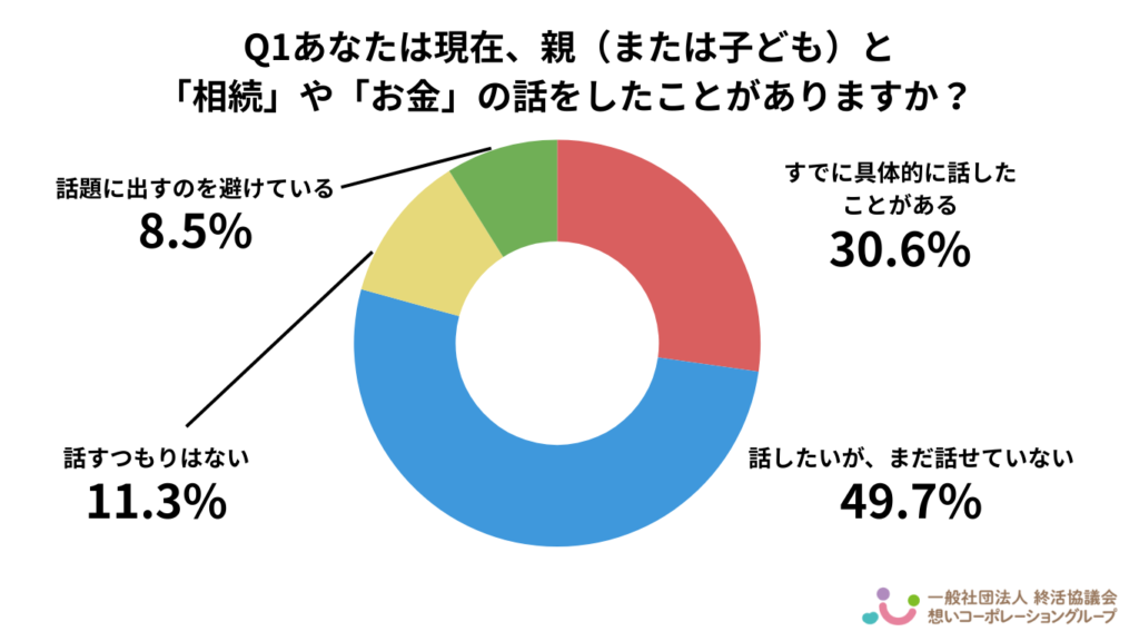Q1. あなたは現在、親(または子ども)と「相続」や「お金」の話をしたことがありますか?